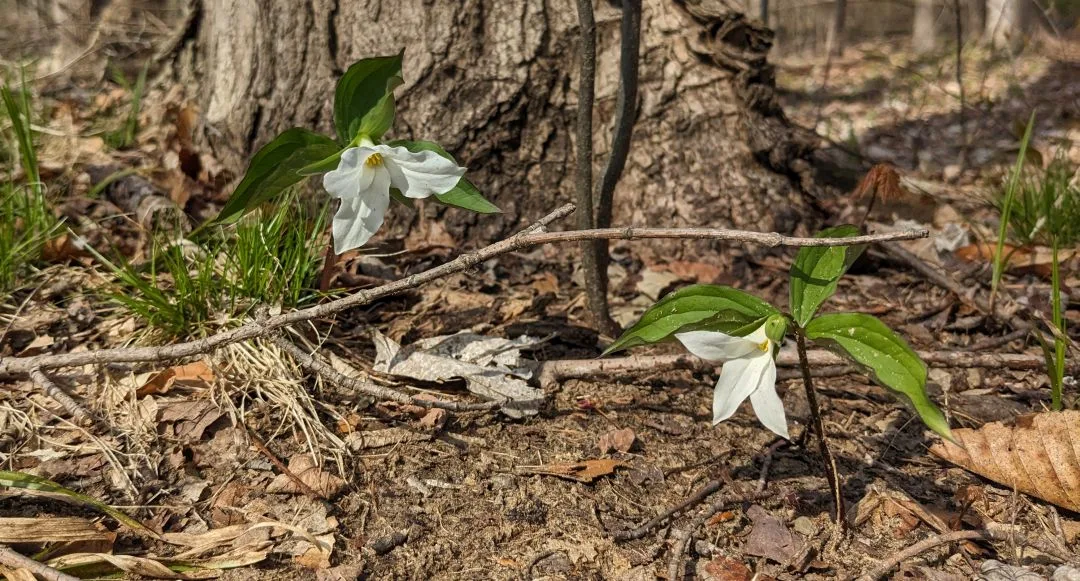 The Brown Trail offers a comforting walk, secluded but accessible. Spring has brought some mud, but that’s also a sign of the season to come. Many beginnings of spring can be spotted, especially with the help of an app like iNaturalist. You can see many species of buttercups, beginning their buttercup journey, as well as Avens and many fertile fronds of Sensitive Ferns that grow profusely along this trail.